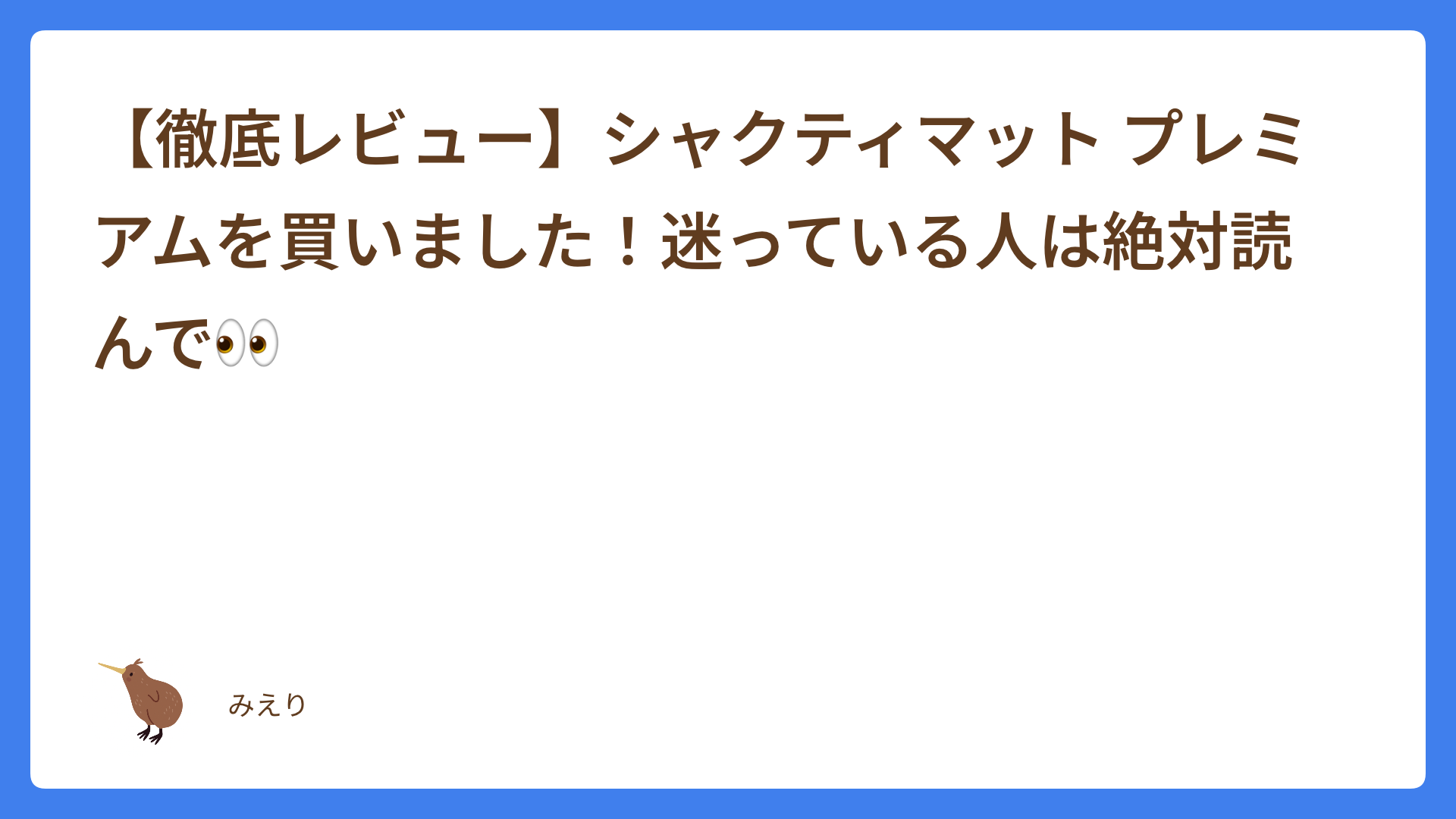 CATEGORY ガチレビュー シャクティマット買ってみた 2025.12.14 ウェルネス me. みえりのプレイルーム 【徹底レビュー】シャクティマット プレミアムを買いました!迷っている人は絶対読んで👀 2025.12.09 ウェルネス me. みえりのプレイルーム ブラックフライデーで買ったぞ〜Insta360 Go Ultra!【動画あり】 2025.11.28 ガジェット me. みえりのプレイルーム 鬼滅の刃 無限城編第一章「猗窩座再来」隠し要素・トリビア・考察まとめ【ネタバレ】 2025.11.21 アニメ、漫画 me. みえりのプレイルーム 【口コミ・レビュー】話題のワークマン「エックスシェルター断熱αプレミアムギガパフダウンコート」買ってみた! 2025.11.08 ガチレビュー me. みえりのプレイルーム 【ルンバ+s9タイヤ交換レポ】公式修理に出さずに自分で直してみた!必要工具・手順まとめ 2025.11.03 ガジェット me. みえりのプレイルーム マンションの人は絶対買って💥こども転落防止柵【おとさんゾウ】 2025.10.30 ガチレビュー me. みえりのプレイルーム Loop Quiet2を追加購入! Loop switchとの比較レビュー 2025.10.24 ガジェット me. みえりのプレイルーム 【本音レビュー】着圧ソックスは普段使いが最強!MAEÉと無印良品を履き比べてみた🧦✨ 2025.10.12 ガチレビュー me. みえりのプレイルーム やっぱりセカンドストリートがだ〜いすき⭐️ 2025.10.07 ガチレビュー me. みえりのプレイルーム 1…2